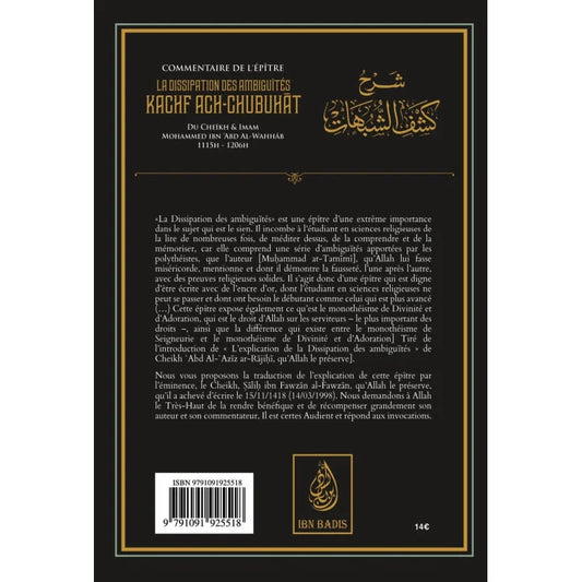 Commentaire de l'épitre : La dissipation des ambiguités (Kachf ach-chubuhât) - Muhammad Ibn Abd Al-Wahhab - Ibn BadisPrix habituel 14,00 €Prix habituelPrix unitaire / par