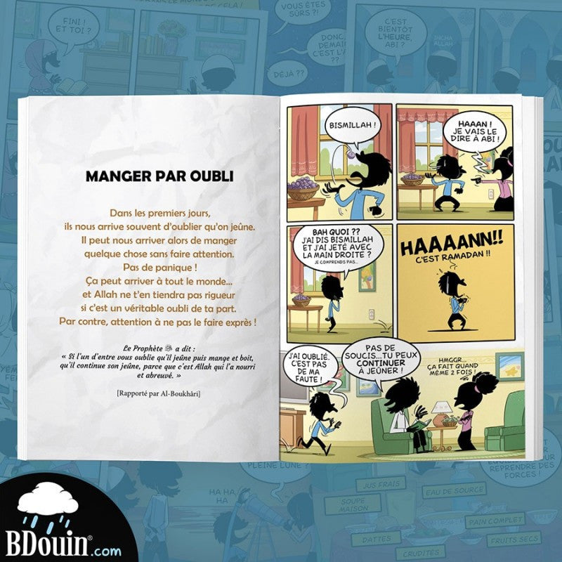 A travers des illustrations ludiques, dessinées par l'équipe du Muslim Show, accompagnées de petits textes et de hadiths, les jeunes lecteurs seront amenés à mieux comprendre ce quatrième pilier de l'Islam et à se préparer à devenir de vrais jeûneurs !