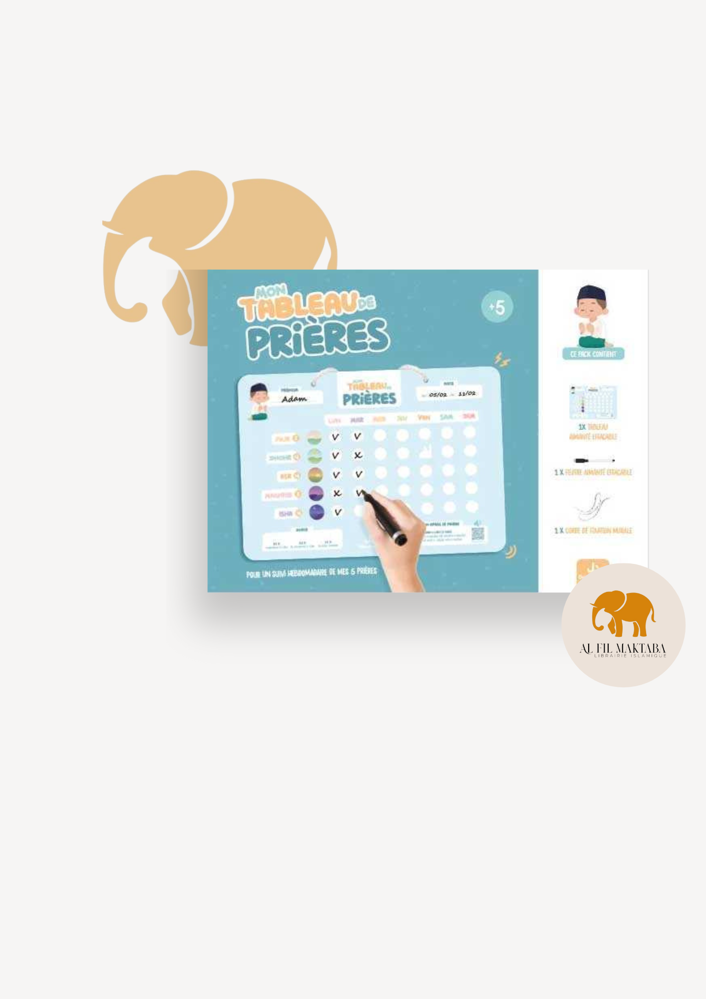 Découvrez notre tableau de suivi innovant dédié aux enfants, spécialement conçu pour les motiver et les accompagner dans l’accomplissement des 5 prières quotidiennes.